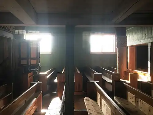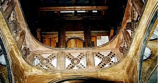 The church was rebuilt and enlarged in 1749. The old choir was torn down and replaced with a wider choir. The old open-air corridors that used to surround the nave were incorporated into the nave. The west wall of the nave was moved about 2.7 metres (8 ft 10 in) further west to lengthen the old nave. A new tower was built on top of the roof of the nave as well. After this project, only some of the wall and roof timbers remained from the original stave church.[4][5]