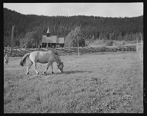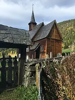 Lomen Stave Church (Norwegian: Lomen stavkyrkje) is a stave church of the Church of Norway in Vestre Slidre Municipality in Innlandet county, Norway. It is located in the village of Lomen. It was formerly the church for the Lomen parish which is part of the Valdres prosti (deanery) in the Diocese of Hamar. The brown, wooden church was built in a long church design around the year 1192 using plans drawn up by an unknown architect. The church seats about 150 people.[1][2]