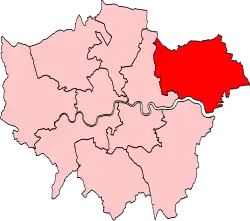 It consisted of the Westminster Parliament constituencies of Barking, Dagenham, Hornchurch, Ilford North, Ilford South, Newham North East, Romford, Upminster, and Wanstead and Woodford.[1]