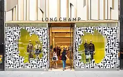 In December 2014, the company opened a larger boutique on the Champs-Élysées in Paris.[13] The store has 500 square meters of retail space split into two levels[13] and is now Longchamp's largest store in Europe.[56] This flagship store houses the brand's entire leatherwear range of accessories for men and women, as well as luggage, women's "ready-to-wear" clothing and shoes. This boutique features a wall of Longchamp's famous Le Pliage handbags[62] and attracts Parisians and tourists from around the world.[56]