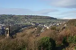 Longwood is a village and suburb of the town of Huddersfield in the English county of West Yorkshire. It is situated some 2.5 miles (4.0 km) west of Huddersfield town centre, in the valley of the Longwood Brook, a tributary of the River Colne.