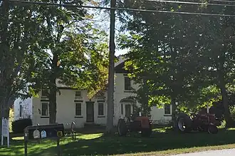 The Loomis-Pomeroy House is located in what has historically been called the village of North Coventry, on the south side of US 44, west of its junction with Main Street. US 44 is in this area part of the historic Boston Post Road, and the cluster of buildings making up the village includes the Second Congregational Church, directly across the street from the house. The house is a predominantly brick structure, its main block a 2+12-story structure, three bays wide, with an attached ell with a brick and clapboard exterior. Historically the house was on a 100-acre (40 ha) farm, this has been reduced over time to 3.8 acres (1.5 ha), which includes the house, a barn, an ice house, and a privy.[2]