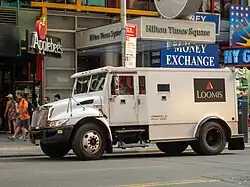 In the US, Loomis operates an electronically linked service network of nearly 200 operating locations, employs over 8,000 people and utilizes a fleet of approximately 3,000 armored and other vehicles to provide secure armored transport, automated teller machine (ATM) services, cash processing and outsourced vault services for banks, other financial institutions, commercial and retail businesses. It was a division of Securitas AB from 2001 to 2008, when it was listed at Nasdaq OMX Stockholm.[2][3]