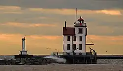 The Lorain West Breakwater Light, also called the Lorain Harbor Light, is a lighthouse in Lorain, Ohio, United States. The light was built in 1917 on Lake Erie by the United States Army Corps of Engineers. It was taken out of service in 1965 when it was replaced by an automated light tower on a nearby breakwater.[3] The light was added to the National Register of Historic Places in 1978.[2]