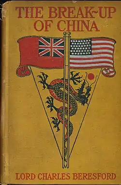 In 1898 Beresford was promoted to rear-admiral and again entered Parliament, this time representing York, though he spent much of his time in China representing the Associated Chambers of Commerce. He spent 100 days in China, and on his return to London, spent 31 days writing The Break-Up of China (1899).[26] He resigned from the House of Commons for a second time in January 1900, becoming Crown Steward and Bailiff of the Chiltern Hundreds again, to become second in command of the Mediterranean Fleet, and left London to take up this position the following month.[25] A dislike steadily developed between Beresford and Admiral Sir John Fisher, who was then commanding that fleet. Shortly after his arrival, Beresford took a company of men ashore and used them as stand-ins for ships to practice manoeuvring and assembling a fleet. Fisher noticed the display and publicly sent a signal demanding to know why Beresford had landed his men without permission. Lord Charles resented his superior as a social climber from unknown origins, while Fisher was jealous of Beresford's inherited wealth and social position.[27] In early February 1902 he left his position in the Mediterranean Fleet and returned to England.[28]