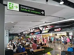 Terminal 2 is a two-story structure. The ground floor manages arrivals with customs and immigration facilities, a baggage claim area, car rental services, taxi stands, snack bars, and souvenir shops. The upper floor is dedicated to departures, featuring check-in areas, a security checkpoint, and a 400 metres (1,300 ft) long departure concourse. This section includes restaurants, food stands, duty-free shops, and 19 gates, nine of which are equipped with jet bridges. A VIP lounge in Terminal 2 is located past security, near the central food court.