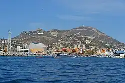 There are four main golf courses in the municipality, designed by the likes of Jack Nicklaus and Pete Dye.[12] Other activities for tourists include snorkeling, diving, dune-buggy rides, camel rides, zip-lining, rides on water-propelled jet packs,[5] surfing (especially at the Acapulquito Beach), jet-ski riding, kayaking, sailing, horseback riding, ATV riding, hang gliding, mountain biking, camping, tennis and rappelling.[8][14] Off the beaten path, there is the town of Miraflores (for its leather crafts), the Santiago fossil museum, the traditional towns of Caduaño, San Antonio and San Bartolo and a glass blowing factory.[2]