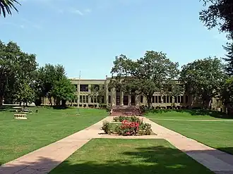 Los Gatos High School, originally Los Gatos Union High School, was founded in 1908 and remains the only high school in Los Gatos.[5] From the late 1880s until then, high school age students were taught at Los Gatos Central School, a grammar school which was established in 1886.[6] The original building was in Mission Revival style, and on the site of the current library. The current Neoclassical main building was dedicated on January 17, 1925; it was built using a $250,000 bond measure passed in 1923, and was designed by W. H. Weeks, a famous architect of schools in California. The former building continued in use but was gradually demolished and by 1955 had entirely disappeared.[6] The main building was extensively renovated in the mid-1960s, reopening in 1967.[5] In 2001, the town of Los Gatos passed a $79 million bond measure for a new renovation, which included several new buildings.