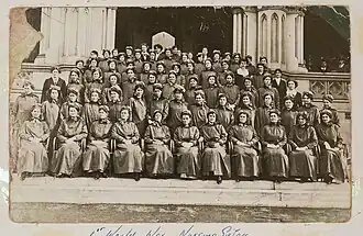 WWI nurses, taken on the steps of the Parliamentary Library. 1st row fifth from the left is Louise Brandon.