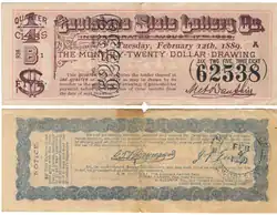 The Louisiana State Lottery Company was a private corporation that in the mid-19th century ran the Louisiana lottery. It was for a time the only legal lottery in the United States, and for much of that time had a very foul reputation as a swindle of the state and citizens and a repository of corruption.