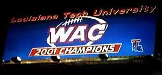 In 2001, following the Western Athletic Conference losing 8 of its members and the creation of the Mountain West Conference,[65] the Bulldogs accepted an invite to the WAC. Louisiana Tech went on to win the WAC championship in its first year of membership, earning Bicknell conference Coach of the Year honors.[66] Louisiana Tech played Clemson in the 2001 Humanitarian Bowl, the program's first postseason appearance since 1990.[67] Tech's star player that year was quarterback Luke McCown, who still owns several of the school's passing records.[68] During his tenure in Ruston, Bicknell's teams defeated AQ-conference teams Alabama, Michigan State and Oklahoma State. 22 of his players also went on to be drafted or signed by National Football League teams. Bicknell was fired by Louisiana Tech following a 3–10 campaign in 2006.[69][70]
