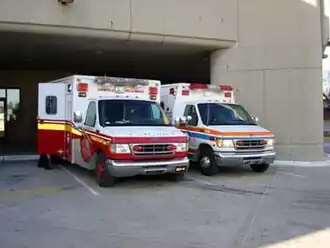 LMEMS utilizes a fleet of modular ambulances manufactured by Lifeline Emergency Vehicles from Sumner, Iowa[7] and Ford Explorer response vehicles called chase-cars. Currently three styles of ambulances are in use. Specimens of the former LFD and JCEMS (slant-sided) ambulance types remain in use until retirement with new paint and striping. The newest (post-merger) ambulances retain the straight-side feature of the former LFD type and are taller, longer, and heavier. In 2012, Ford Motor Company announced they would no longer manufacture the Econoline van ambulance prep package and subsequently LMEMS has opted to begin procuring Type I vehicles based on the F-450 pickup truck chassis. The first delivery of Type I ambulances occurred in 2013.