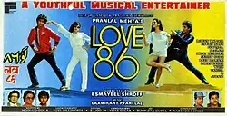 Love 86 (Hindi: लव Urdu: لوو ٨٦) is a 1986 Bollywood romantic drama film directed by Esmayeel Shroff, starring Govinda, Neelam, Farha Naaz, Rohan Kapoor, and Tanuja. It was a remake of the 1982 Tamil film Ilanjodigal. This was Govinda's Debut Movie.[1]