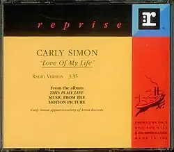 "Love of My Life" is a song written and performed by American singer-songwriter Carly Simon, featured in 1992 Nora Ephron film This Is My Life, and its accompanying soundtrack album.