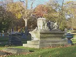 Roadways in the cemetery were laid out to take advantage of the natural terrain, occasionally providing vistas. The main circulation route, Washington Avenue, roughly encircles the property, with several roads providing access across the central areas. The cemetery was laid out in 1841 to a design by George P. Worcester, a civil engineer, applying principles of the rural cemetery movement that was then just coming into vogue. The cemetery has a wide variety of funerary art in diverse styles, from typical Victorian forms to the Egyptian Revival and Art Deco. Many prominent Lowell residents of the 19th and 20th centuries are interred here.[2]
