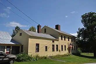 The Andrews House stands close to the east side of South Bridgton Road (Maine State Route 107) in a rural area of southern Bridgton. The house is a rambling connected series of wood-frame structures, with the main house block at the southern end, and ells extending along the road to the north and behind the house to the east. The main block is a 2+1⁄2-story structure, five bays wide, with a side gable roof, central chimney, clapboard siding, and a stone foundation. Decorative elements are minimal, with the central entrance framed by pilasters and a fanlight, with a dentillated cornice above. A shed-roof porch extends across the southern facade, supported by fluted Doric columns. A 1+1⁄2-story four-bay addition, its front flush with that of the main block, extends north, with another section extending further north to join the house to a carriage barn. On the east side a series of two ells join the house to a livestock barn.[2]