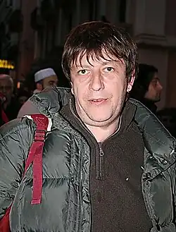 Luca Casarini (born 8 May 1967) is an Italian activist and former proponent of the Tute Bianche movement. Born in Venice, Casarini was influential in the development of the Tute Bianche movement that practiced social and civil disobedience while dressed in white overalls and padding (known as a "padded block").