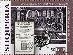 Posta Shqiptare, 2018, commemorative stamp for the 400th anniversary of the publication of E Mbësuame e Krështerë