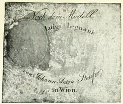 As a regular visitor to Vienna, Legnani cooperated with Johann Georg Stauffer and his son Anton to make guitars according to Legnani's design, to be followed by a number of other luthiers ("Nach dem Modell des Luigi Legnani" / "after the model of Luigi Legnani").[5][6]