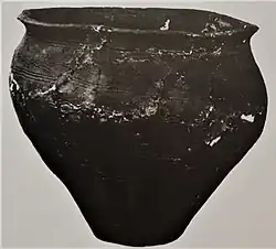 The cultural phases are divided into "Early" with prevalent stucco ceramics (late 7-8th century), "Middle" or "Developed" with partially wheel-made pottery (earliest since 761,[12] but usually 9th century), and "Late" with predominant wheel pottery (10th century).[1][3] Generally, the ceramic is predominantly of conic pots with enlarged upper part and bent rim, also bowls and frying pans.[1][2][3] The pottery has ornamental lines, bands, rims and holes.[13]