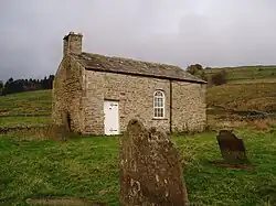 Lunds lies in a remote location in Upper Wensleydale. In the early 18th century, it lay in the parish of St Oswald's Church, Askrigg, but was more than 12 miles away from the parish church. A chapel of ease was constructed for the local residents, and was recorded in 1718.[1] The current building dates from the mid 18th century.[2] It was the smallest church in the Diocese of Ripon, with a capacity of 60 worshippers. It closed in 1981 and its condition deteriorated, though it remained in church ownership. In 2011, it was used for scenes in the film Wuthering Heights. Restoration work started in 2023.[3] It has been grade II listed since 1969.