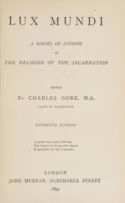 Lux Mundi: A Series of Studies in the Religion of the Incarnation is a collection of 12 essays by liberal Anglo-Catholic theologians published in 1889.[1] It was edited by Charles Gore, then the principal of Pusey House, Oxford, and a future Bishop of Oxford.[2]