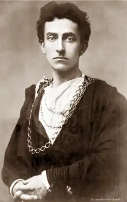 In 1902 Johnston Forbes-Robertson starred in a season; his repertory included Othello and Hamlet, with Gertrude Elliott as his co-star.[23] His Hamlet was described in the press as "the most refined and beautiful embodiment of Hamlet vouchsafed to our generation",[37] and "a revelation".[38] Max Beerbohm said, "He shows us, for the first time, Hamlet as a quite definite and intelligible being".[39]