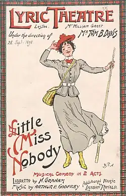 In 1894 George Edwardes produced His Excellency, a comic opera with a libretto by Gilbert and music by F. Osmond Carr. It closed after 162 performances, victim of an influenza epidemic that kept audiences away from theatres.[33] William Greet then took the theatre, presenting The Sign of the Cross, written by and starring Wilson Barrett. This play, about a Roman patrician converted to Christianity by his love for a Christian girl, brought people to the Lyric who had never before entered a theatre,[18] and it ran for 435 performances from January 1896.[34] Greet and Barrett followed this with the latter's Daughters of Babylon, co-starring Maud Jeffries; among the junior members of the enormous cast was the young Constance Collier.[35] In 1897 and 1898 two French actresses played seasons at the Lyric, first Gabrielle Réjane and then Sarah Bernhardt.[23] For the rest of the 1890s musical pieces returned: Little Miss Nobody by Harry Graham with music by Arthur E. Godfrey and Landon Ronald (1898), L'amour mouille by Louis Varney (1899), and most successful, Florodora (1899), starring Evie Greene, which ran for 455 performances and was also a hit in New York.[23][36]