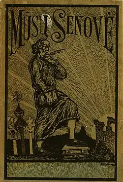 With the help from Vincas Krėvė-Mickevičius, Mūsų senovė was financed and published by the Ministry of Education.[1] Contributors included Paulius Galaunė, Liudas Gira, Jurgis Šaulys.[2] Five volumes (a total of 865 pages) were published before it was discontinued due to financial difficulties and low quality of published material.[3] It published articles on various topics (including a few on subjects such as archaeology or numismatics) and primary material for future studies (such as correspondence, memoirs, diaries, documents). They mostly concerned the history of Lithuania from the January Uprising of 1864 to World War I.[1] The magazine also published reviews of books. One such review by Augustinas Voldemaras of books by priest Antanas Alekna resulted in a polemic discussion that highlighted differences between more liberal intelligentsia and more conservative Christian clergy.[4] Editor Tumas-Vaižgantas was not an academic and the publication was rather chaotic without a well-defined structure.[1]