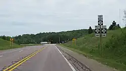 The highway begins at US 2, one mile (1.6 km) south of Engadine and crosses the Canadian National Railway line before entering town.[4][5] In Engadine, M-117 meets the western terminus of H-40 which runs on Hiawatha Trail. The trunkline passes a small pond in town and some farm fields north of Engadine. The terrain transitions to forest as the highway crosses into Luce County. The route angles slightly to the northeast to avoid Kaks Lake south of M-28 near Newberry.[4][6] M-117 provides an important connection between two of the main highways in the UP.[7] This connection is listed on the National Highway System,[8] a network of roadways important to the country's economy, defense, and mobility.[9] Of the ten state trunklines that connect M-28 and US 2, M-117 is one of three that do not overlap either. The others are US 45 and Interstate 75.[4][6]