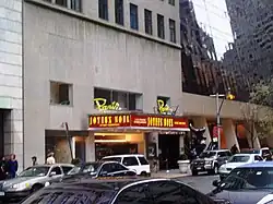 A television broadcast of the concert, titled Madonna: The MDNA Tour, aired on Epix in the United States on June 22, 2013.[28] The concert premiered at 8 pm. EST on Epix's TV network and online at EpixHD.com and on Epix apps.[20] On June 18, the concert special had a world premiere screening at the Paris Theater, in New York City, with Madonna attending the event in a press conference with the media, celebrities, and fans. A contest was released just for US residents, who had the chance to win two invitations for the special event.[29] The singer wore a black tuxedo and a top hat to the premiere, the ensemble being a tribute to actress Marlene Dietrich and her similar attire in the 1930 film, Morocco.[30] The singer had a Q&A session and also showed a trailer of her secretprojectrevolution film with photographer Steven Klein.[31]