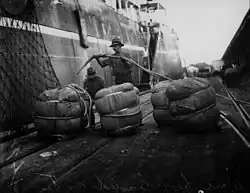 Wool being loaded onto a ship at Brisbane, c. 1931.