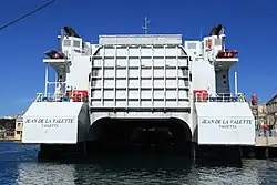 MV or HSC[a] Jean de La Valette (JDLV)[2] is a high-speed catamaran ferry owned and operated by Virtu Ferries. Built by Austal in 2010, it is one of the largest vessels of its kind in the world. It operated routes from Malta to Pozzallo and Catania in Sicily, serving as a link between Malta and the rest of Europe, until it was replaced by the MV Saint John Paul II in March 2019. The vessel was leased to the Trinidad and Tobago Inter-Island Ferry Service between 2019 and 2021 to serve as an inter-island ferry between Port of Spain and Scarborough. The vessel then returned to Malta to operate on its original route.
