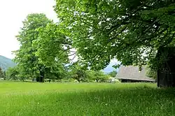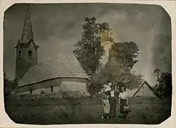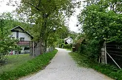 The local church, dedicated to Saint Anne, was built on the top of Hunter's Peak (Slovene: Lovski vrh, German: Annaberg 'Mount Saint Anne'[14]: 193 ) north of the settlement. It is also a site of a prehistoric Iron Age settlement. The pilgrimage church, a 16th-century building that survived the Second World War, was demolished in 1953 or 1954.[16] A chapel-shrine dedicated to Saint Anne was erected next to the site of the former church in 2003.[14]: 193
