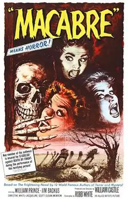 Macabre is a 1958 American horror film directed by William Castle, written by Robb White, and starring William Prince and Jim Backus. The film falls into both the horror and suspense genres.[4]