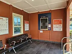 Macksville has one platform. Each day northbound XPT services operate to Grafton, Casino and Brisbane, with three southbound services operating to Sydney.[4] There is a connecting bus service to Nambucca Heads.[5] This station is a request stop for the northbound Brisbane XPT and the southbound Casino XPT, so these services stop here only if passengers have booked to board/alight here. A goods yard and passing loop were formerly opposite the station, until disconnected in June 2012.[6]