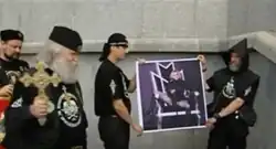 Various Madonna's concerts were condemned by religious adherents, including radical Orthodox believers.[76][111] For instance, during her 1993's Girlie Show, Plinio Corrêa de Oliveira, a Brazilian traditional Catholic activist reported protests and "rebuff" in countries such Germany and Argentina.[112] She angered many Polish religious adherents in various of her stops when she toured.[113] According to Evangelical Times during her Dutch stop of the Confessions Tour, police arrested a 63-year-old priest who admitted to making a hoax call in an attempt to disrupt the event. A bomb threat was also reported.[114] In January 2023, Madonna sparked again outrage among Christian community after doing an all-female Last Supper photoshoot, and also for channeling Virgin Mary as Our Lady of Sorrows, on the first Vanity Fair's European "Icon issue".[115] The European Conservative headlined, that her photoshoots "Reveals Deep Occult Roots of the Entertainment Industry".[116]