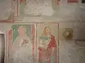 The stone church was built in the 15th century. Inside the church are votive frescoes: Saints on the counter-façade (1457), a Madonna and Child above entry portal (1502), and a St Matthew (1544). The church suffered damage from the 1997 earthquakes.[1]