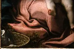 This small painting, intended for private devotion, was enthusiastically mentioned in Giorgio Vasari's Le Vite: "Beautiful to admire, by the hand of Correggio, in which Our Lady places a chemise over Baby Jesus."[1] Its provenance is mentioned by Vasari as entering Parma in the first half of the 1500s, brought by French knight Chevalier de Bayard, a client of Parmigianino and an art collector of the time.