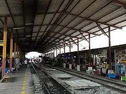 Maeklong railway station is a railway station located in Maeklong subdistrict, Mueang Samut Songkhram district, Samut Songkhram province. It is a class 1 railway station and is located on the east bank of the Maeklong River. It is the main railway station of Samut Songkhram province. Currently, 8 rail services operate at the station.[1]