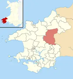 Maenclochog is an electoral ward in Pembrokeshire, Wales. It covers the Maenclochog community and the two neighbouring communities of Llandissilio West and Clynderwen.[1] The Maenclochog ward elects a councillor to Pembrokeshire County Council.