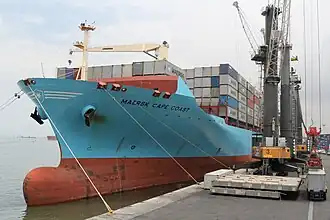 Maersk Cape Coast is a container ship operated by Maersk Line, which measures 50,869 gross tons.[4] It is named Cape Coast after the capital of Central Region, Ghana. The ship was named in Tema Harbour by Ernestina Naadu Mills, the former first lady of Ghana on 18 July 2011.[3] The container ship is one of Maersk Line's fleet of vessels that ply the West Africa sector.[5]