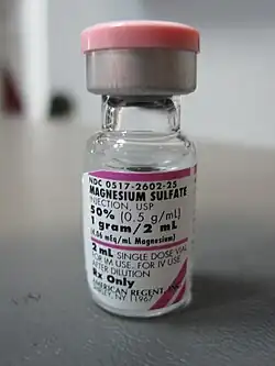 - ^ "Magnesium Sulfate: Drug Safety Communication – Recommendation Against Prolonged Use in Pre-term Labor". FDA. Archived from the original on 3 June 2013. Retrieved 2 June 2013.