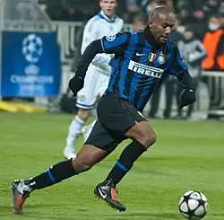 In July 2006, Inter Milan officially announced the signing of Maicon for a fee of £4.8 million and a five-year contract, along with fellow Brazilian fullback Maxwell and French midfielder Olivier Dacourt.[5] During his time at Inter, he established himself as a reliable wing-back, solid defensively with an ability of making emphatic runs down the right wing, often setting up goals or scoring himself with his powerful right foot. He overtook Inter captain Javier Zanetti as the first choice right back, with the Argentine moving in midfield.[6] He was generally considered one of the best wing-backs in the game.