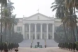 The Maidan was initially developed as a 5 square kilometre parade ground for the forces.[7] While the Europeans moved to the area around the Maidan, the Indians moved away from the area. The richer families such as the Debs moved to Sobhabazar, the Tagores to Pathuriaghata and Jorasanko, and the Ghosals to Bhukailash (Khidirpur).[8] Although the army has owned the Maidan since it was developed, administering it was one on the long list of duties of the police. Thieves, both Indian and European, were there as early as the 1860s.[9] Legally also, the fort and the Maidan were excluded from the city as per Act 16 of 1847.[10]