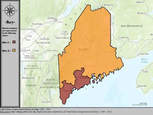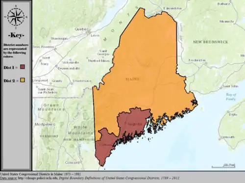 Table of United States congressional district boundary maps in the State of Maine, presented chronologically.[4] All redistricting events that took place in Maine between 1973 and 2013 are shown.