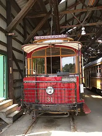 ![]() Biddeford & Saco Railroad car 31, one of six trolley cars in the 10-vehicle listing | |