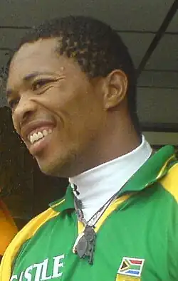 Makhaya Ntini OIS (born 6 July 1977) is a South African former professional cricketer, who played all forms of the game. He was the first black player to play for the South African national cricket team.[1] Ntini was a member of the South Africa team that won the 1998 ICC KnockOut Trophy.