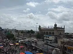 The Makkah Masjid located in Hyderabad, in the Hyderabad district of the state of Telangana, India. It is the largest mosque in the city,[1] and one of the largest in the country, with a capacity of 10,000 worshippers.[2] The mosque was built during the 17th century, and is a state-protected monument. It serves as the primary mosque for the Old City of Hyderabad,[3] and is located close to the historic landmarks of Charminar, Chowmahalla Palace and Laad Bazaar.