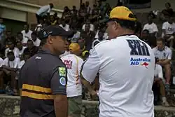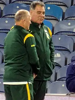 Meninga (right) on duty as the Head Coach of Australia